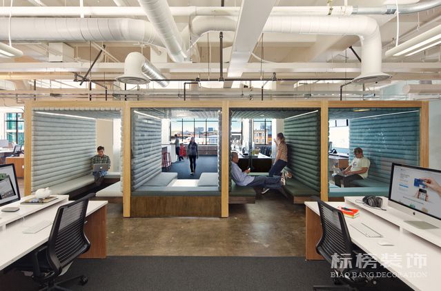 的風(fēng)格一致,同時還要注意隔斷的尺寸。保護個人空間性,低隔斷的尺寸要保證我們在坐的時候可以環(huán)顧四周,方便交流,而在伏案時,則不受四周環(huán)境影響,可以有自己的辦公空間?! ?br />