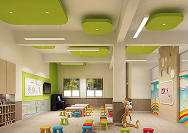 展廳設計以藍色為主色調:前廳有天花吊頂造型,以石膏板和天花軟膜為主。展廳頂面裸頂掃黑色乳膠漆再加上一些鋁方通,多邊形燈膜